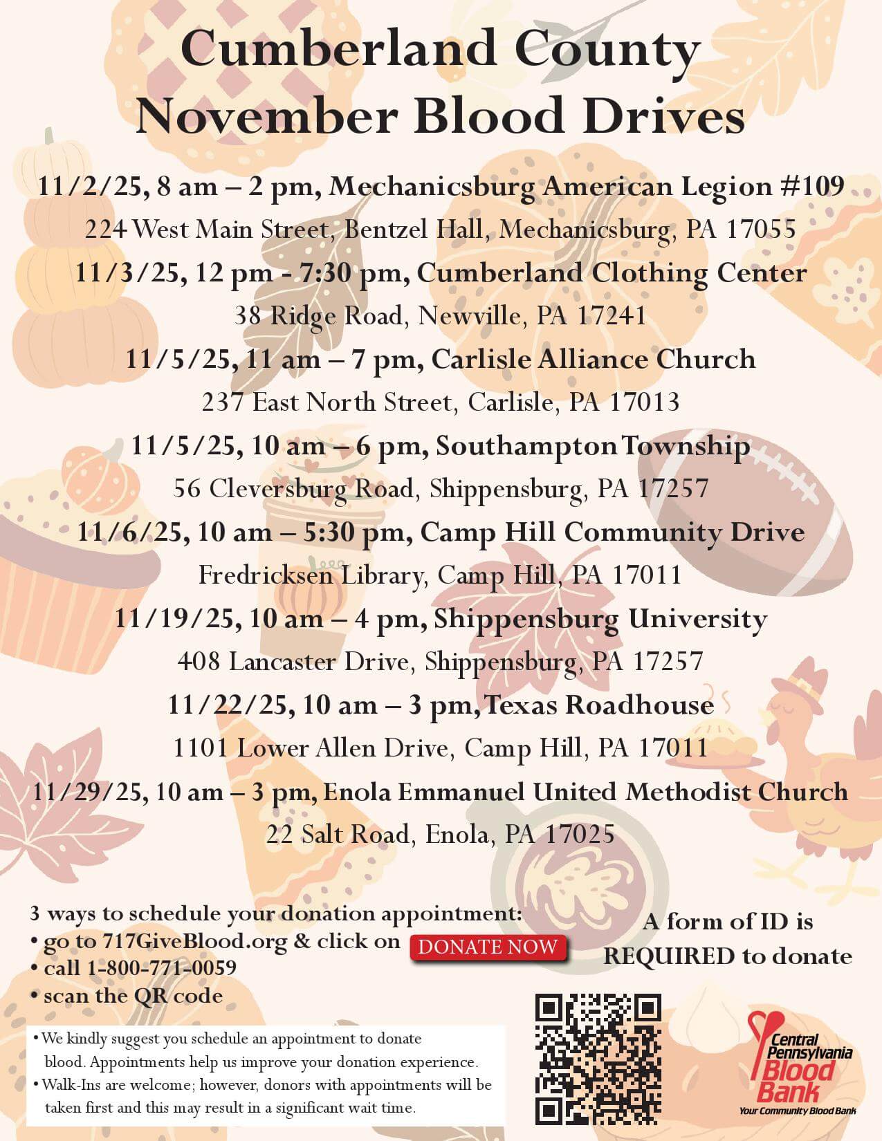 Blood Drives For Cumberland County In November 2025